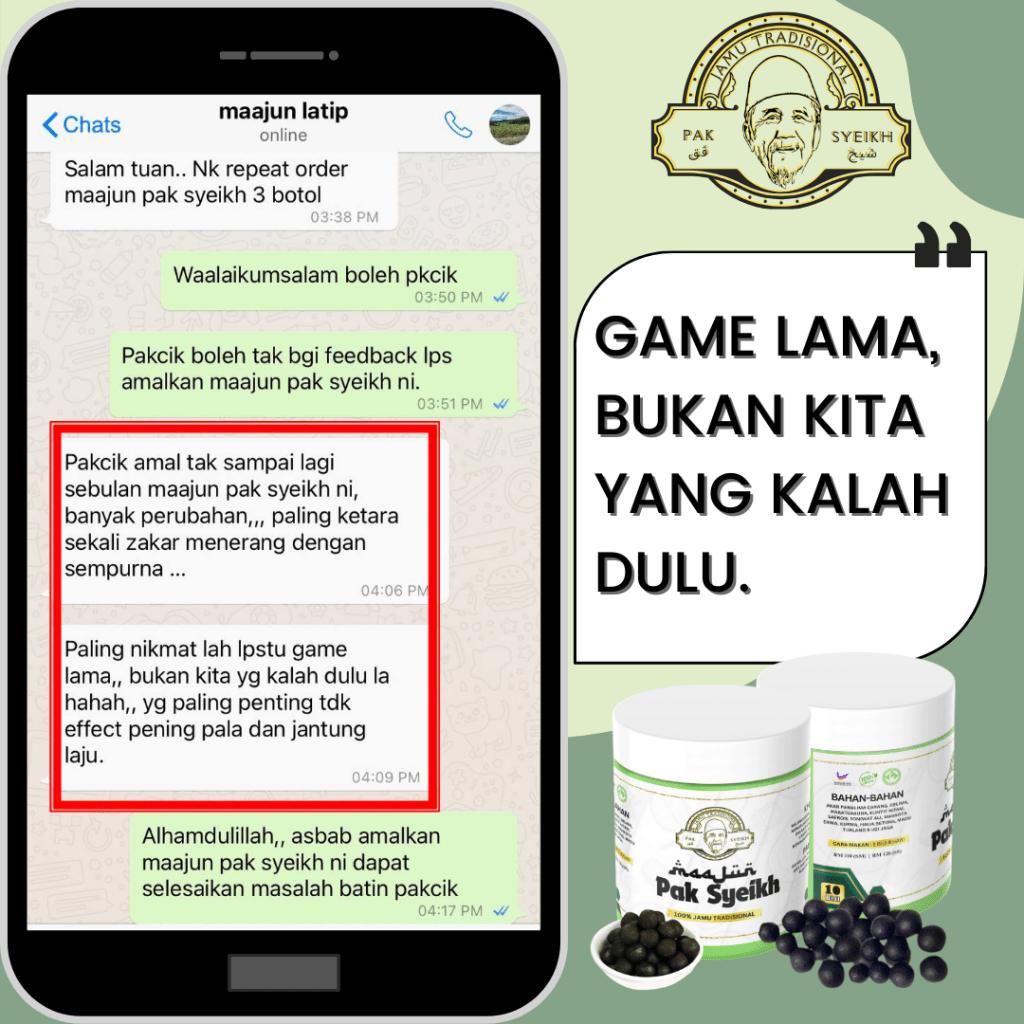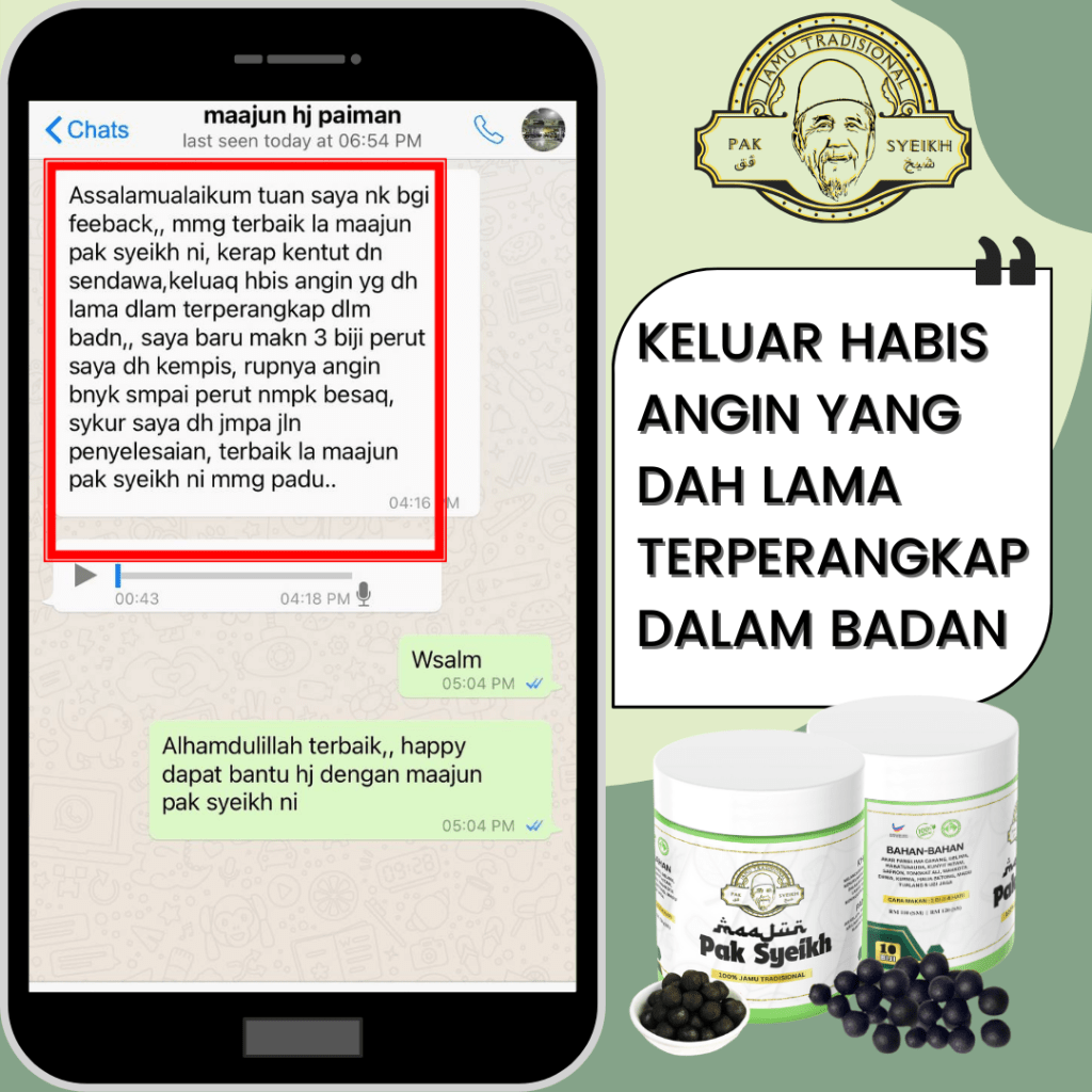 Bukan nak cakap apa la, dah macam macam produk saya cuba tapi Maa jun Pak Syeikh ni memang paling terbaik saya amalkan selama 2tahun.