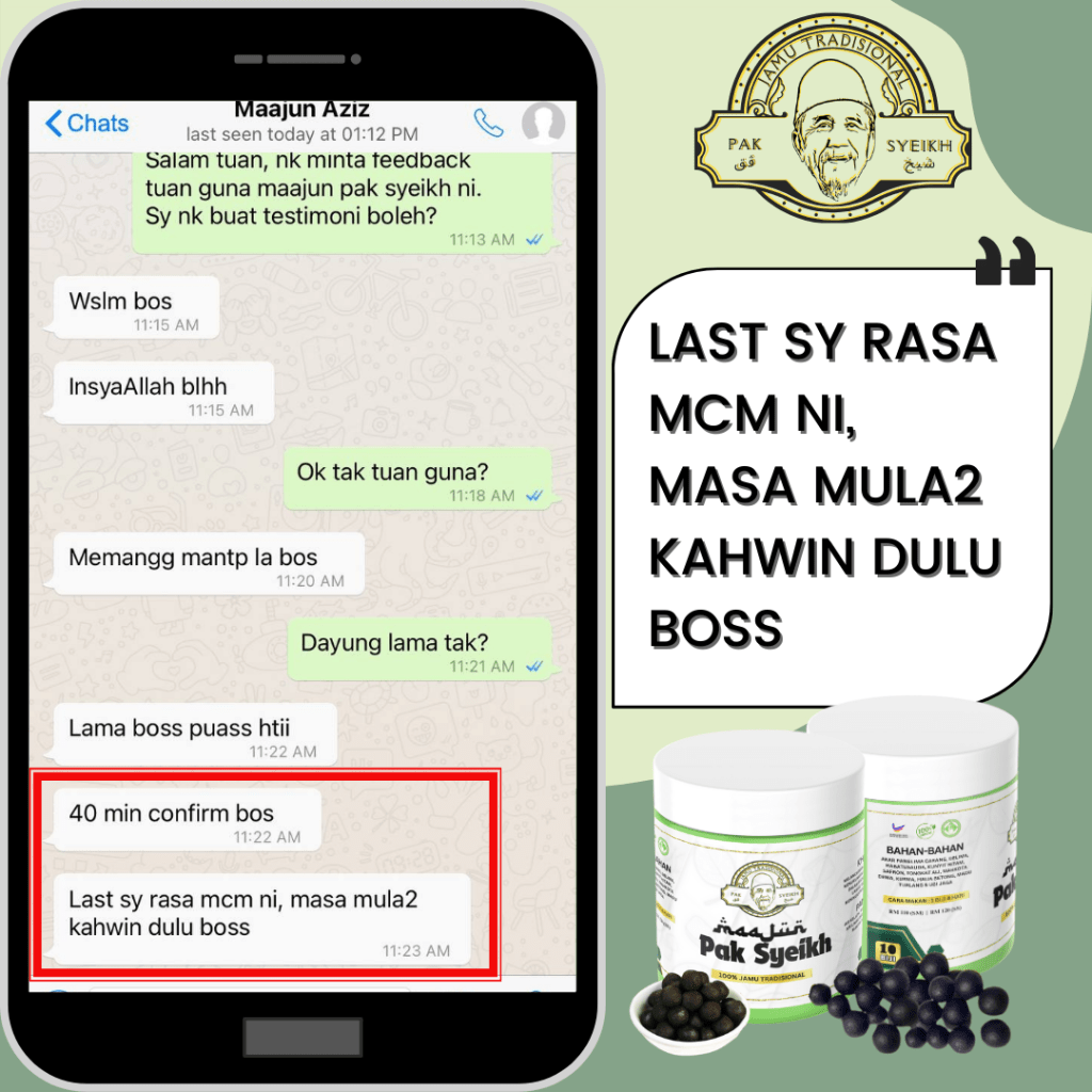 saya suka Makjun Pak Syeikh ni. tak panas dan cepat naik. awal-awal guna dah rasa perubahan pada zakar.
